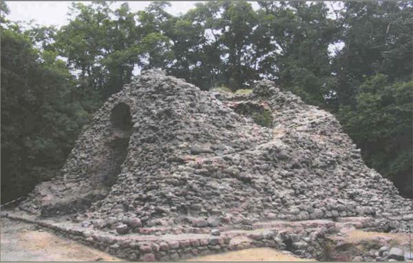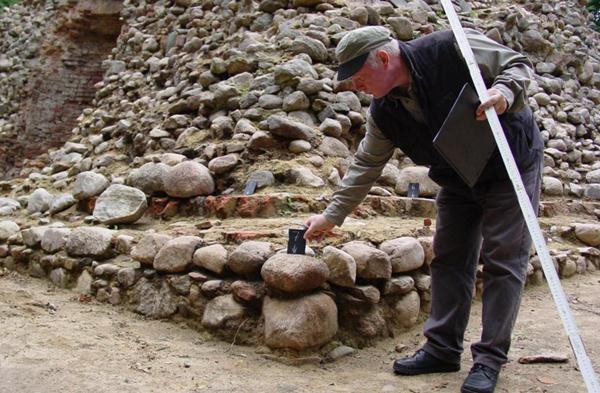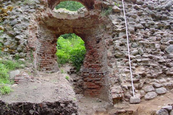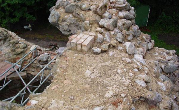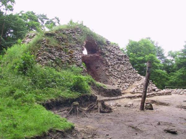 Etwa 20 Meter südlich von der Ruine fanden sich Fundamentreste einer ehemaligen Stützmauer aus Findlingen, die mit einem Vorsatz rampenartige Zugänge zum oberen Hügelbereich bildete, wie sie auf einem kolorierten Stich von 1790 erkennbar ist.