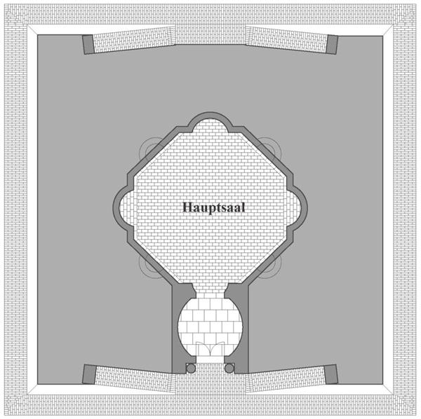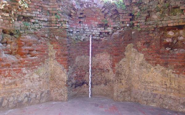 Bei der Beräumung des Hauptsaals wurden Segmente vom Sandsteinring des Opaeums geborgen, fünf von ursprünglich zehn konnten beim Wiederaufbau verwendet werden. Im Hauptsaal blieben dicht über dem Fußboden Putzfragmente mit Farbresten in stark gelockertem Zustand erhalten.